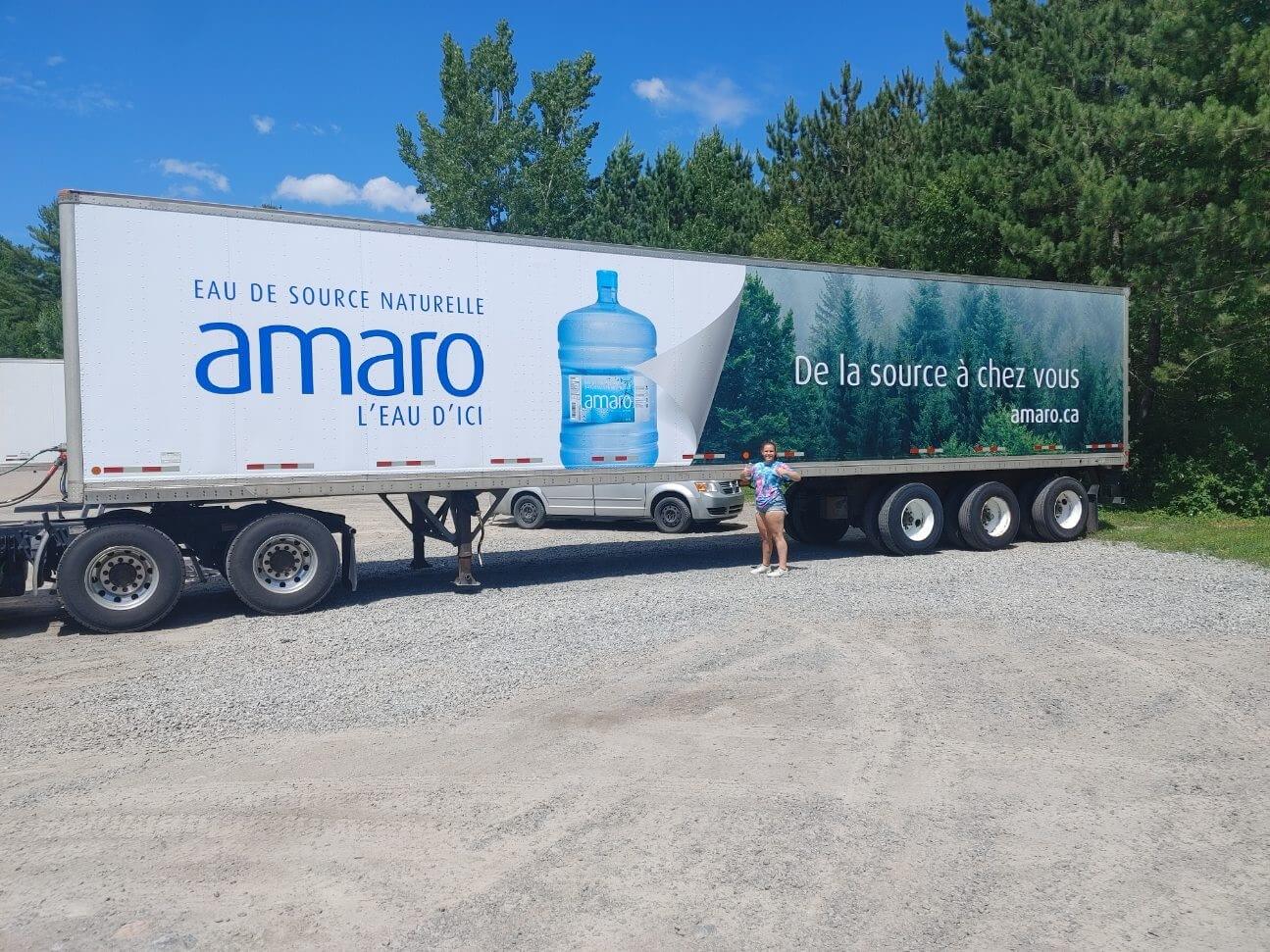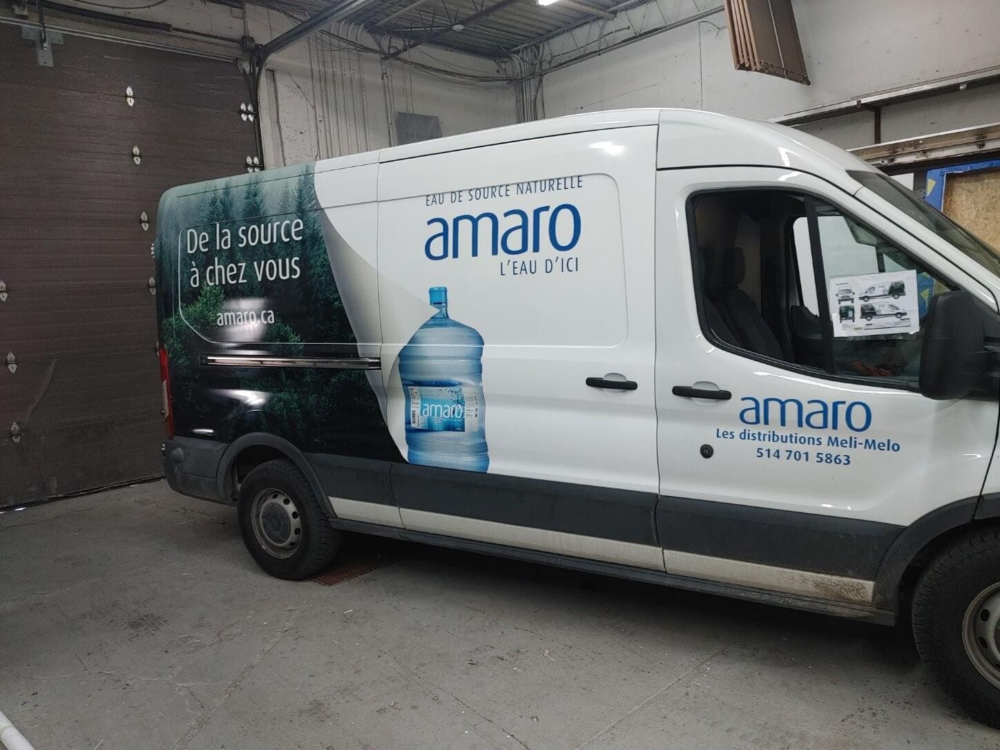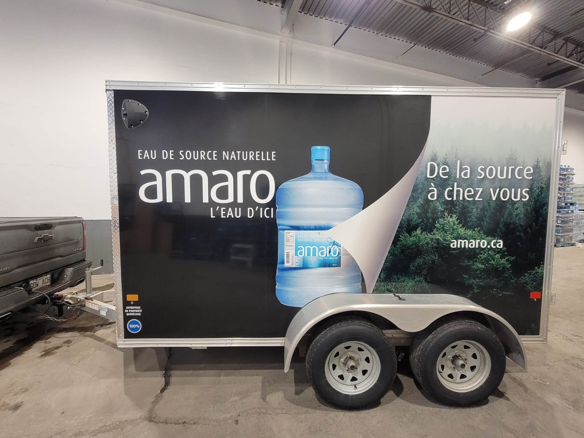 REVO a réalisé l’habillage de camions pour Amaro.ca, en appliquant un lettrage de véhicule avec des vinyles résistants aux intempéries. Ce projet a nécessité une impression numérique de haute précision ainsi qu’une installation soignée, assurant une visibilité optimale sur la route et une durabilité maximale pour les flottes de transport.