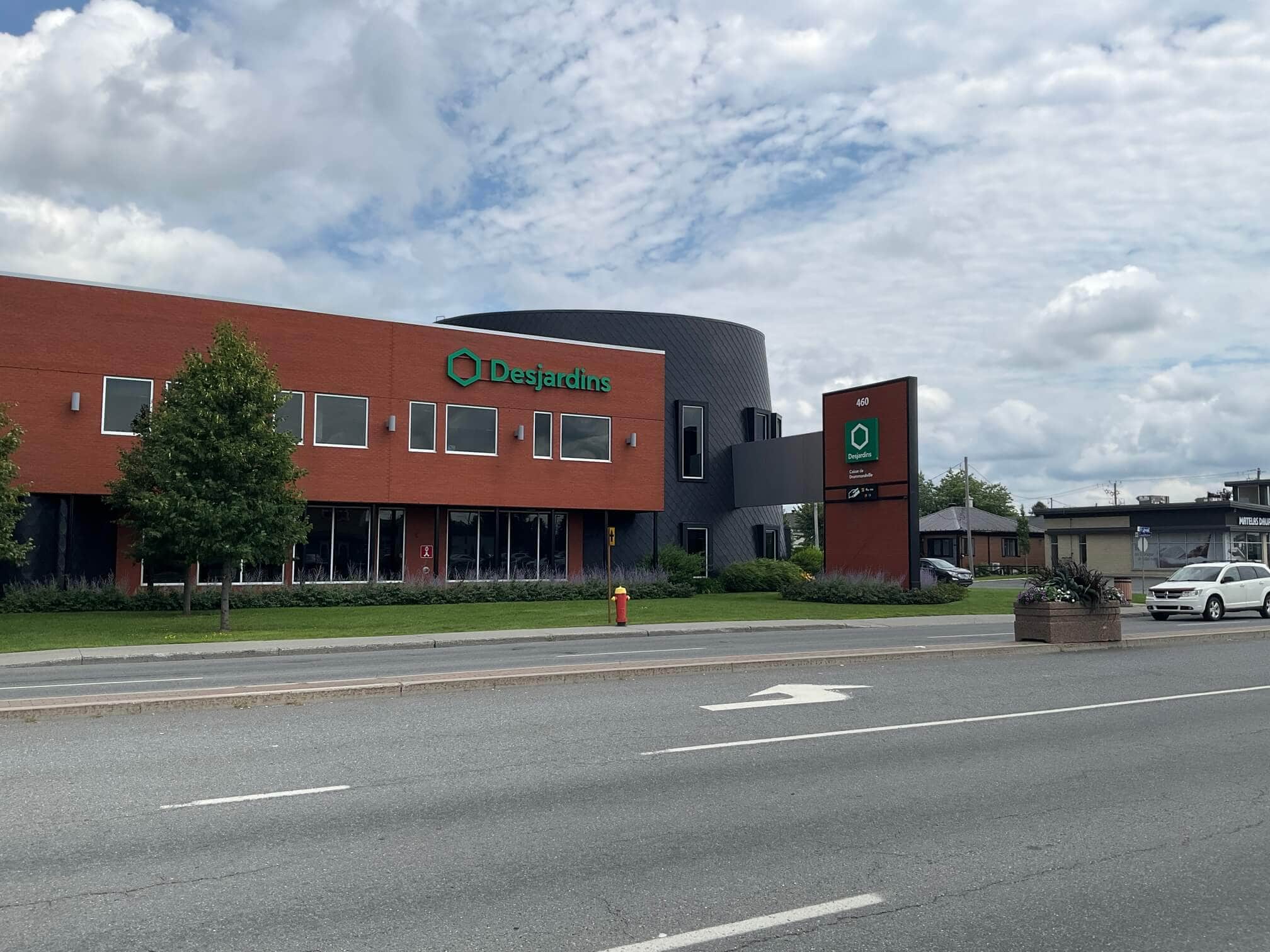 Pour le groupe Desjardins, REVO a conçu et installé des enseignes extérieures de haute qualité, accompagnées de lettrage 3D pour un effet visuel saisissant. Des panneaux institutionnels ont également été intégrés pour renforcer la signalétique des différentes succursales, tout en respectant l’image de confiance et de professionnalisme associée à Desjardins.